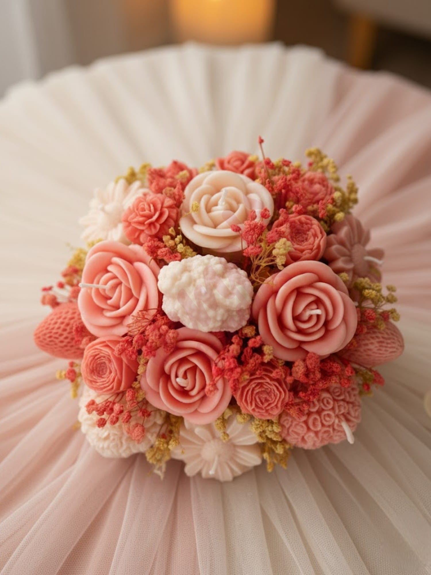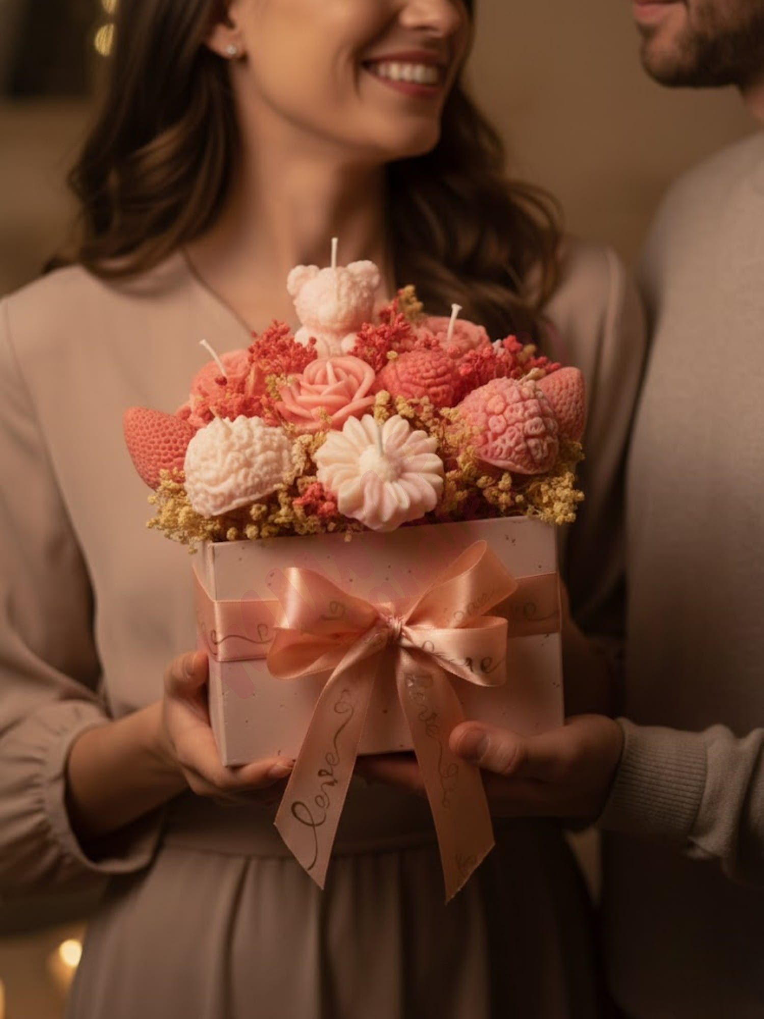 El yapımı doğal soya mumundan üretilen Atelier Roses Buketi - Doğal SoyaWax Mum, ortamınıza hem estetik bir dokunuş hem de huzurlu bir ambiyans kazandırır.
