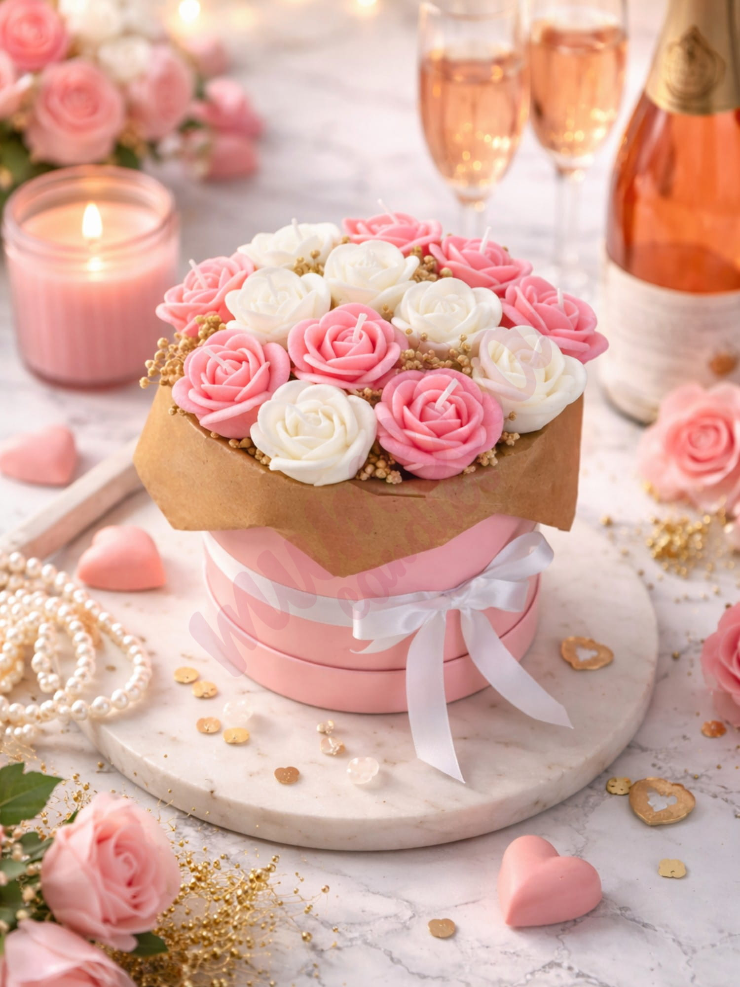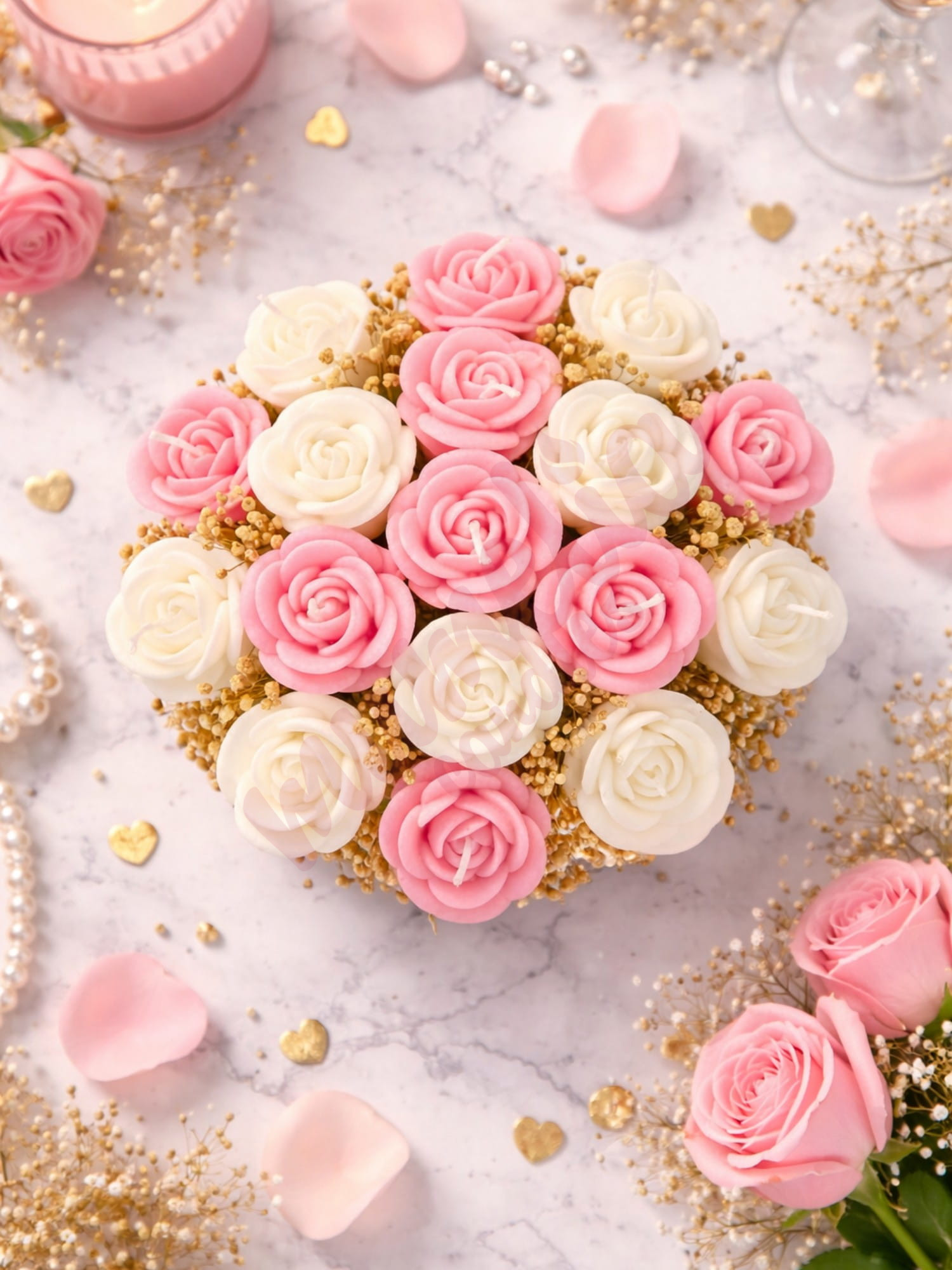 Rosa Serenade Buketi, özenle elde şekillendirilmiş ve tamamen doğal mumlardan üretilmiş zarif bir dekorasyon ve hediye alternatifidir. Her biri gül formunda tasarlanan bu özel mumlar, pembe ve beyaz tonlarıyla hem romantizmi hem saflığı yansıtır. Şık pembe kutusu ve kurdelesi ile sunuma hazır hale getirilmiş bu ürün, sevdiklerinize duygularınızı en doğal haliyle ifade etmenin sıcak bir yoludur. Doğum günü, Sevgililer Günü, yıl dönümü ya da sadece “seni düşündüm” demek için mükemmel bir tercihtir.