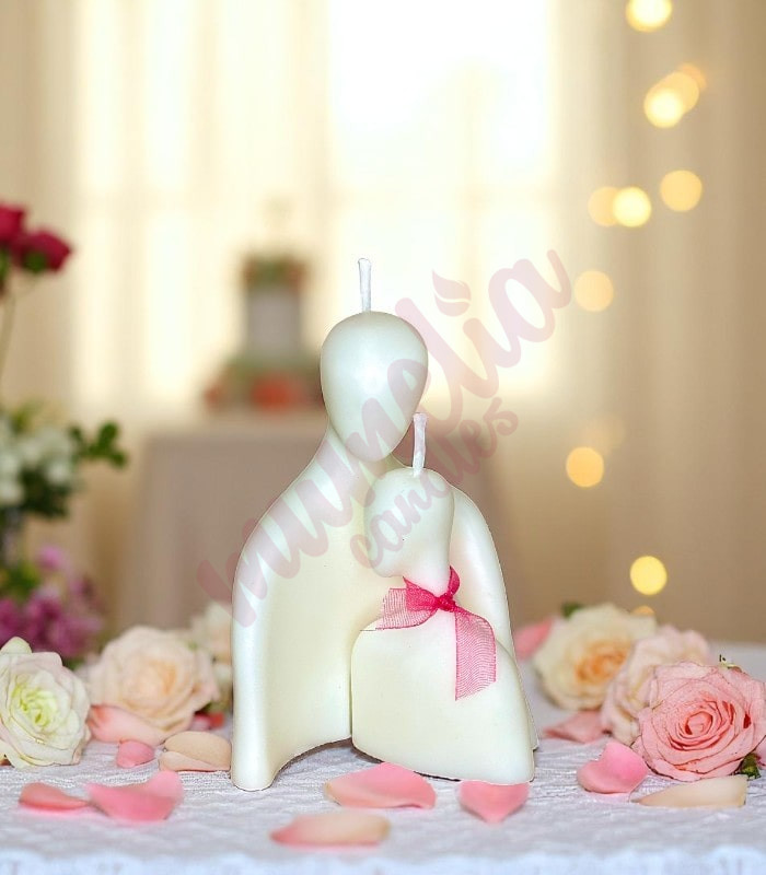 Bu anlamlı mum figürü; anne & çocuk, çiftler ya da ruh eşleri arasındaki bağı temsil eder. İç içe geçmiş duruşları, koruyucu ve şefkat dolu bir sevgi ifadesidir. Üzerindeki kalp figürleri ise duyguların sıcaklığını ve içtenliğini simgeler.