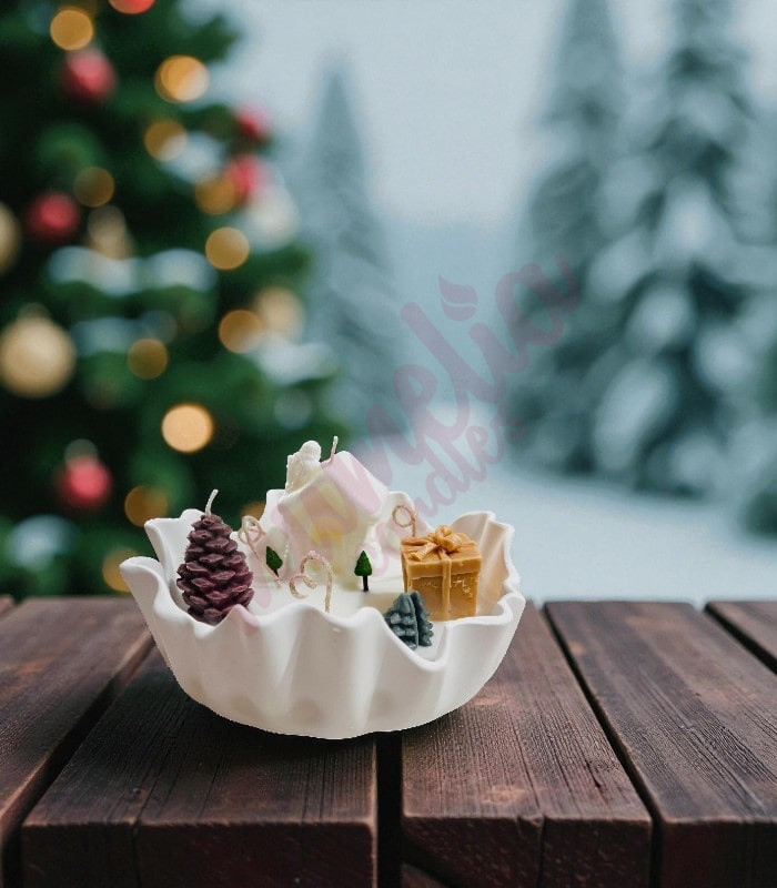 1 adet Kış Temalı Zigzag Taştozu Tabak Doğal Mum