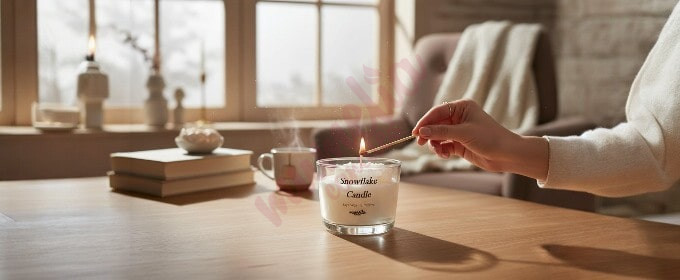 1 adet Kar Tanesi Temalı Kısa Cam Kase Doğal Mum